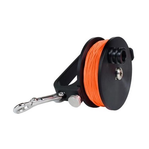 It's amazing how rugged this new reel is while maintaining the simplicity you need in caves and wrecks. It is machined with high-tensile Delrin to ensure abrasion resistance, extra durability and to eliminate warping. A convenient winding knob provides easy and comfortable grip with your gloves on, and a simple one-piece 316 stainless-steel hub is controlled by a knurled stainless-steel lockdown screw. Built in rubber stop to prevent backing out of the lockdown and precise adjustment. Molded line stopper included with both models.