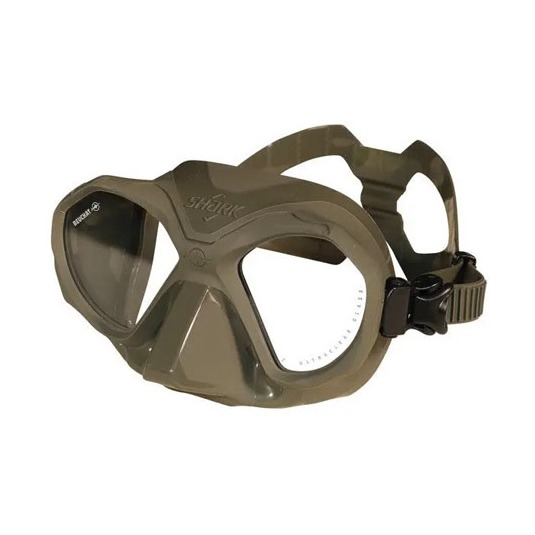 The Beuchat Shark mask is designed to incorporate sharp edges and curves to beak up the silhouette in the same way as a stealth aircraft. Additionally, the grainy surface on the skirt of the mask reduces light reflection and makes it even harder to detect.