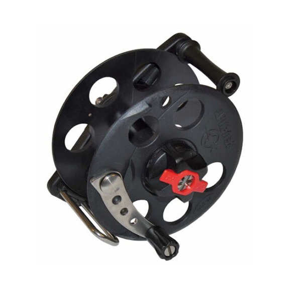 Horizontal reel available in 50m. Featuring a stainless steel mechanism, foldaway crank and adjustable brake.