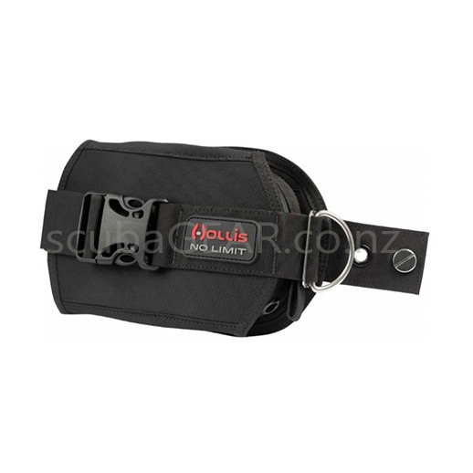 The pouch itself is zippered and holds 12 pounds in each pocket, and is partitioned to isolate weights within the pouch. The benefit is if the pouch is only partially filed, the partition will avoid the weight shifting around during the dive. This system is also reverse compatible to allow use with older Hollis backplates and harnesses. The LX2 system ships as a pair with two pockets and two internal pouches.