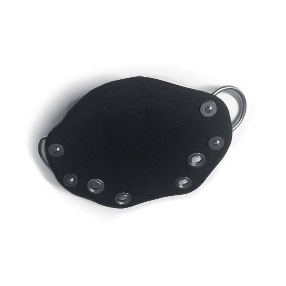 The Butt-Plate is made of reinforced nylon to provide the proper amount of rigidity to hold tanks in position and eliminate sag. Two stainless steel handles are used for tank attachment. Included with the Butt-Plate are two stainless steel assembly screws for securing Butt-Plate to a back-plate. The Butt-Plate is equipped with 4 rust and corrosion resistant stainless steel grommets